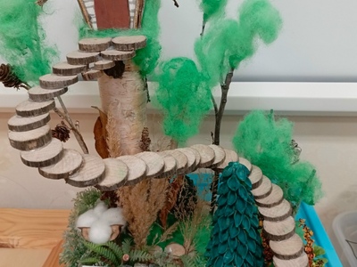 В эти яркие осенние дни, когда природа расцвечена разными красками, в нашем детском саду традиционно состоялся творческий конкурс поделок из природного материала "Осенняя радуга".